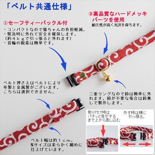【 猫雑貨 招福 】 猫 首輪 トラ柄 セーフティバックル付 安全ベルト 鈴付 日本製 ハンドメイド